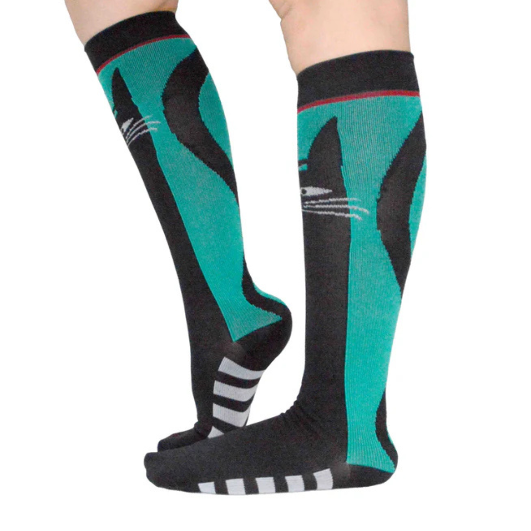 🐾 Dale un toque misterioso y encantador a tu look con estas calcetas que capturan el espíritu juguetón y elegante de los gatos.