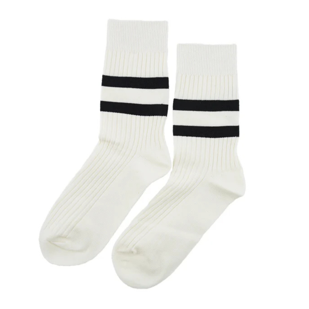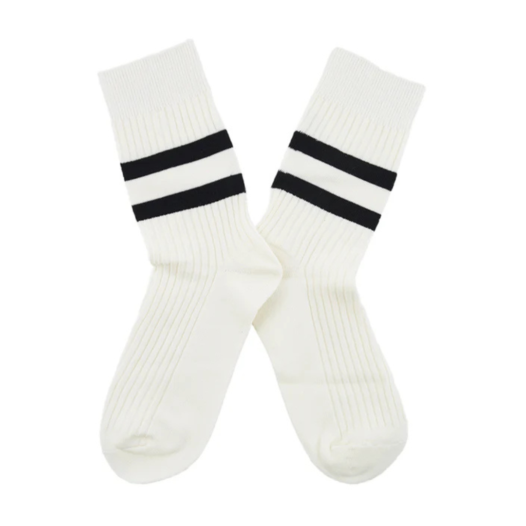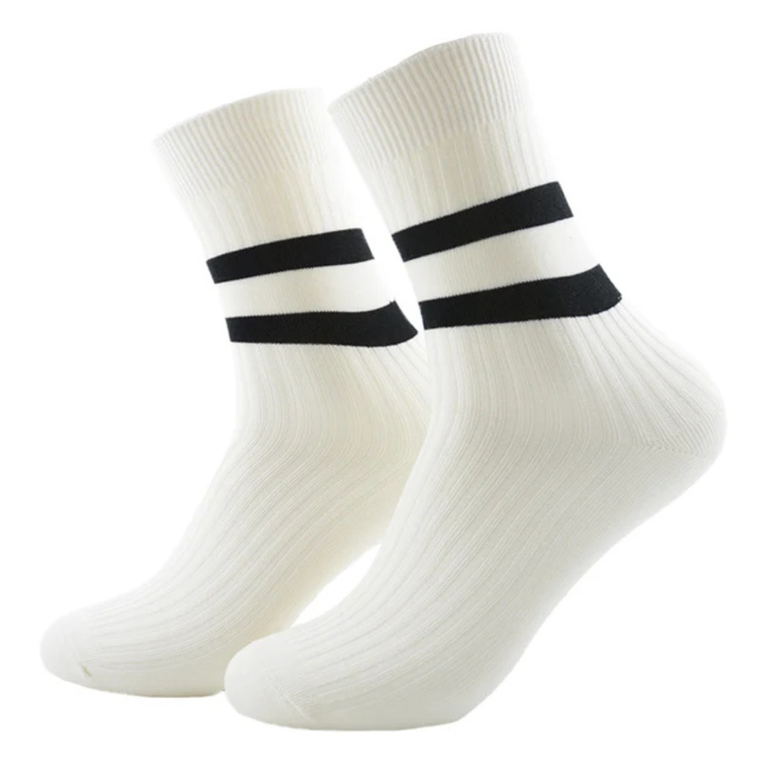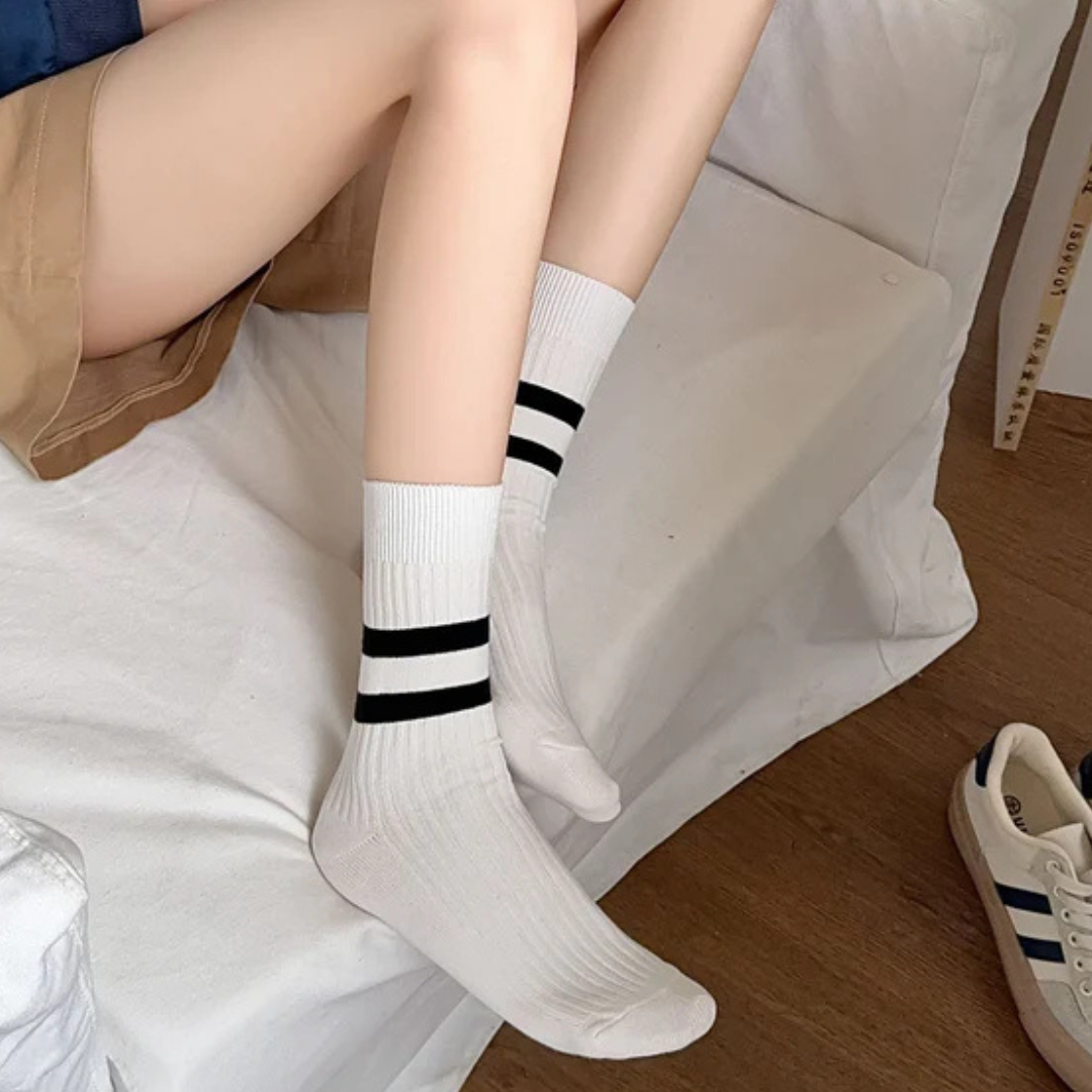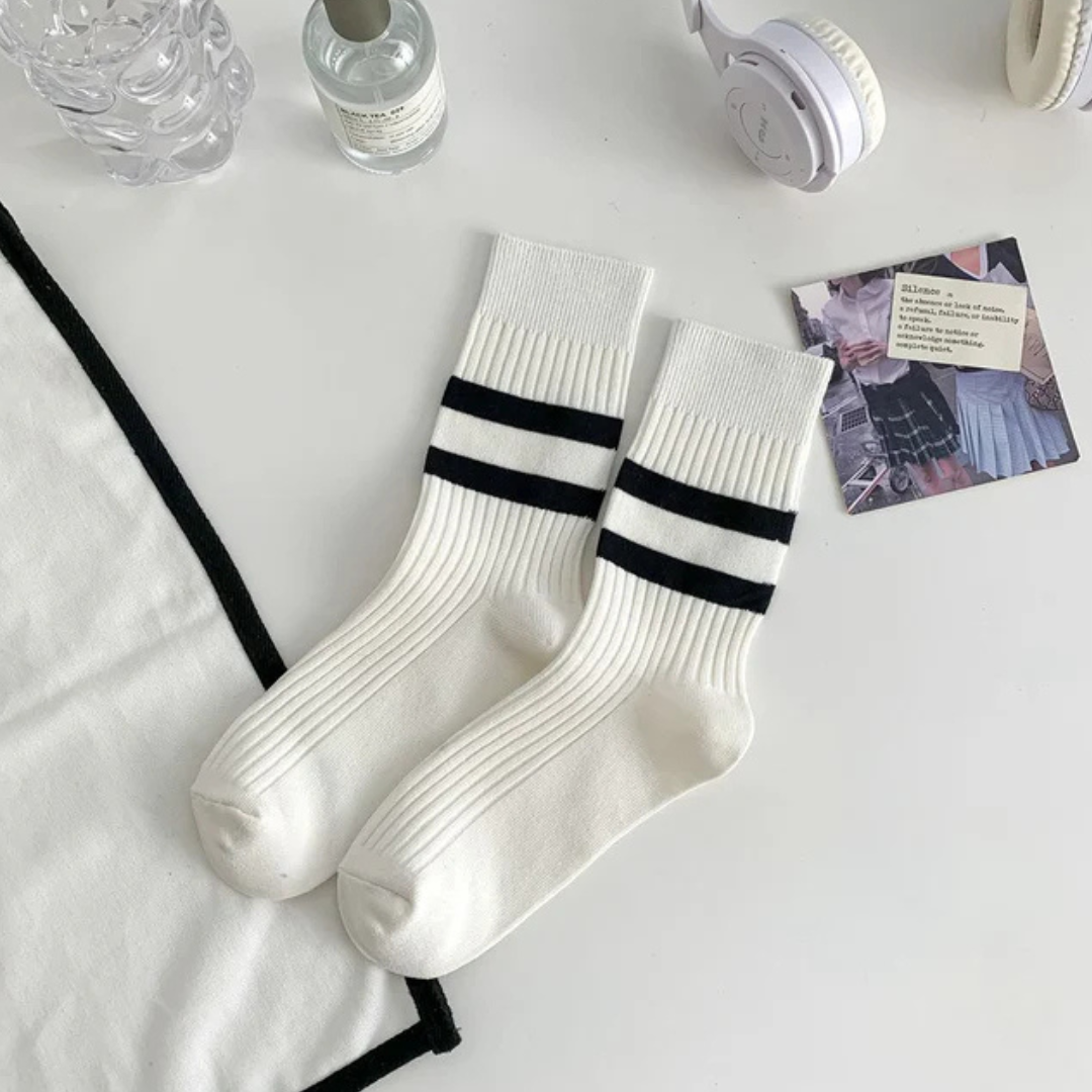 Sencillos pero con carácter, estos calcetines blancos con dos rayas negras son el equilibrio perfecto entre lo clásico y lo cool. Un diseño atemporal que combina con todo y suma estilo a cada paso.
