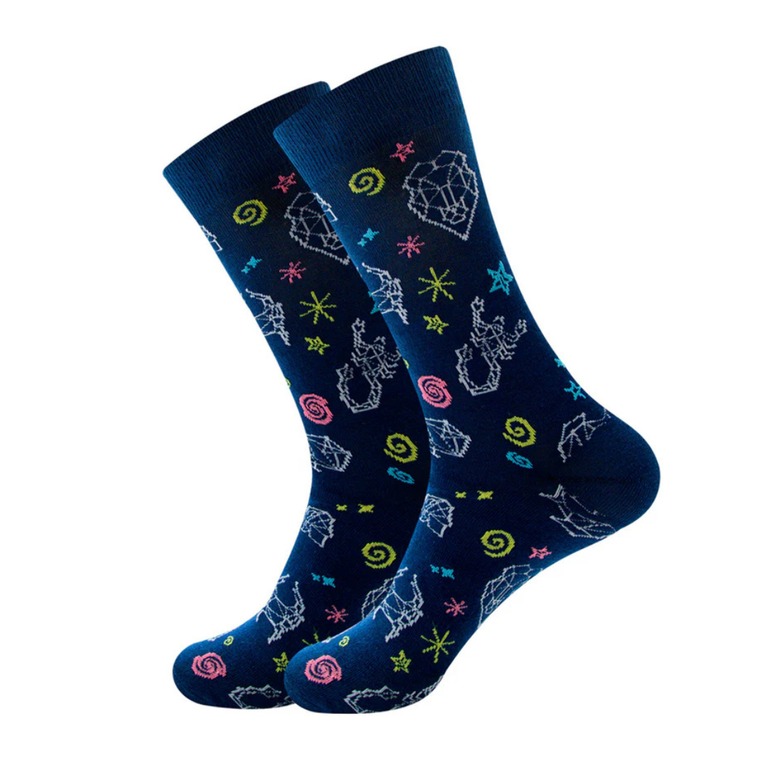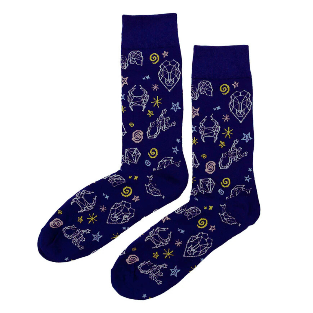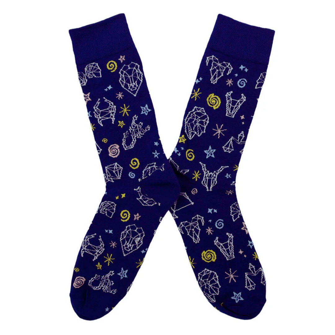 Explora el universo desde tus pies, con estos calcetines adornados con constelaciones. Un diseño galáctico para los soñadores que miran al cielo… y no temen destacar en la Tierra.