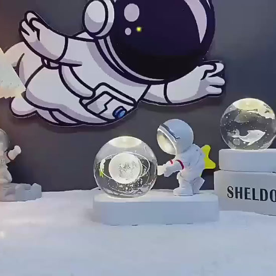 Lampara de luz nocturna con astronauta, es a la vez una luz anticuco y una decoración para la pieza de los niños.
