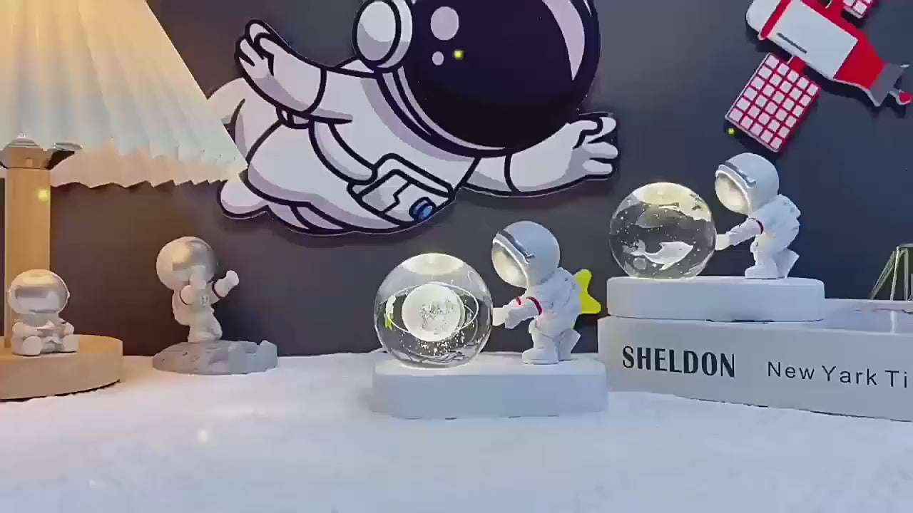 Explora el universo desde tu habitación con esta encantadora lámpara decorativa de astronauta. Su diseño incluye una esfera de cristal que simula una galaxia en su interior, iluminada por una suave luz LED que crea un ambiente mágico y relajante. Ideal para escritorios, veladores o rincones especiales, combina perfectamente funcionalidad y estilo. El astronauta en posición de exploración añade un toque lúdico y futurista. Fabricada con materiales resistentes y de alta calidad, funciona mediante cable USB o batería, lo que la hace fácil de ubicar en cualquier espacio. Un regalo perfecto para amantes del espacio, la ciencia y la decoración creativa.
