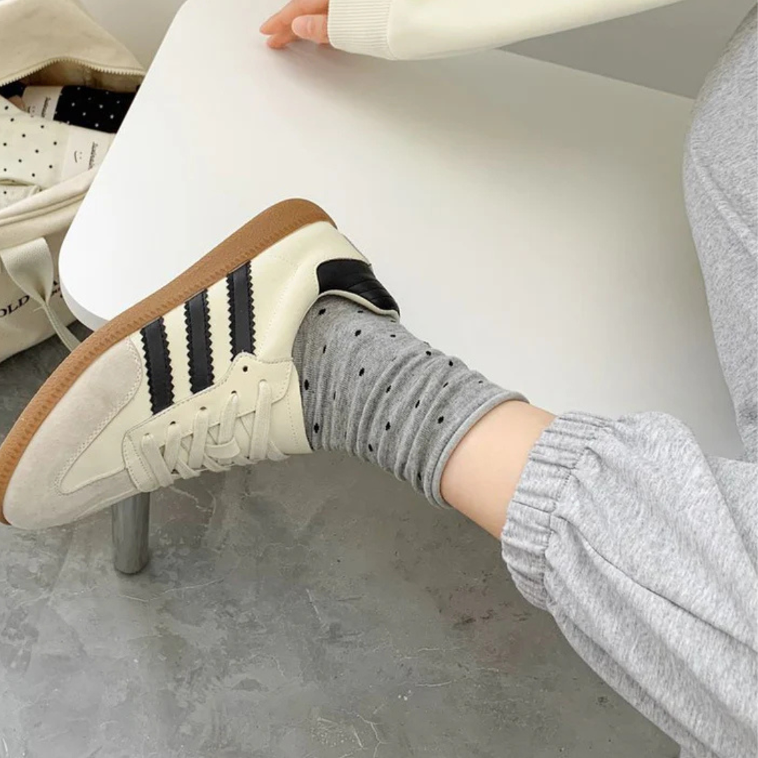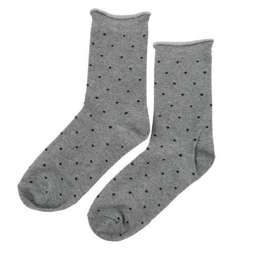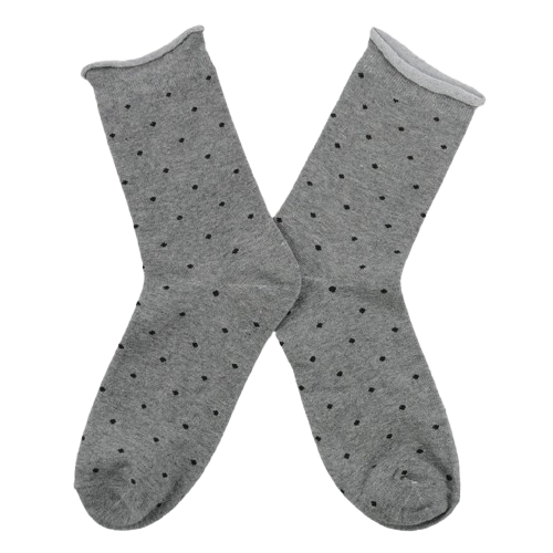 Para quienes disfrutan del estilo discreto, pero cuático y con personalidad, estos calcetines grises con puntitos negros son el equilibrio perfecto entre lo clásico y lo divertido.