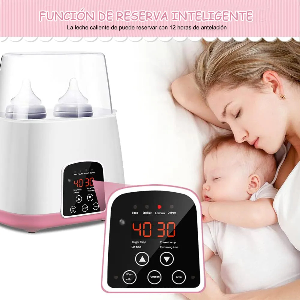 El calentador de biberones multifuncional puede calentar leche, fórmula, esterilizar, calentar alimentos, descongelar y calentar de manera uniforme y rápida. Reserva todas las esencias de los alimentos para tu bebé y ofrece un cuidado integral para la alimentación de los lactantes y un crecimiento saludable.