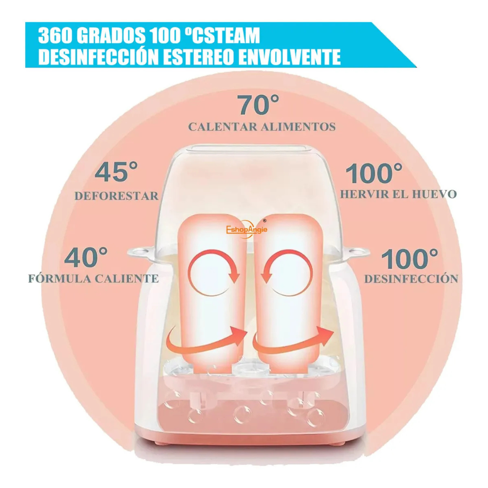Mantiene la leche y los alimentos a una temperatura constante durante 24 horas para preservar la nutrición. El esterilizador de vapor alcanza los 100 °C, eliminando el 99,9 % de las bacterias en las botellas, protegiendo a tu bebé de gérmenes y bacterias dañinas.