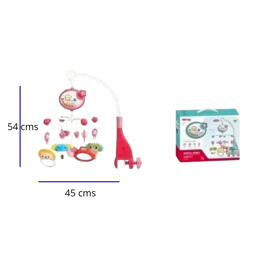 Convierte la hora de dormir en un momento mágico con este móvil giratorio con luz integrada, diseñado para estimular y relajar a tu bebé. Sus tiernas figuras colgantes y movimiento suave captan la atención, mientras la luz crea un ambiente acogedor y tranquilo.