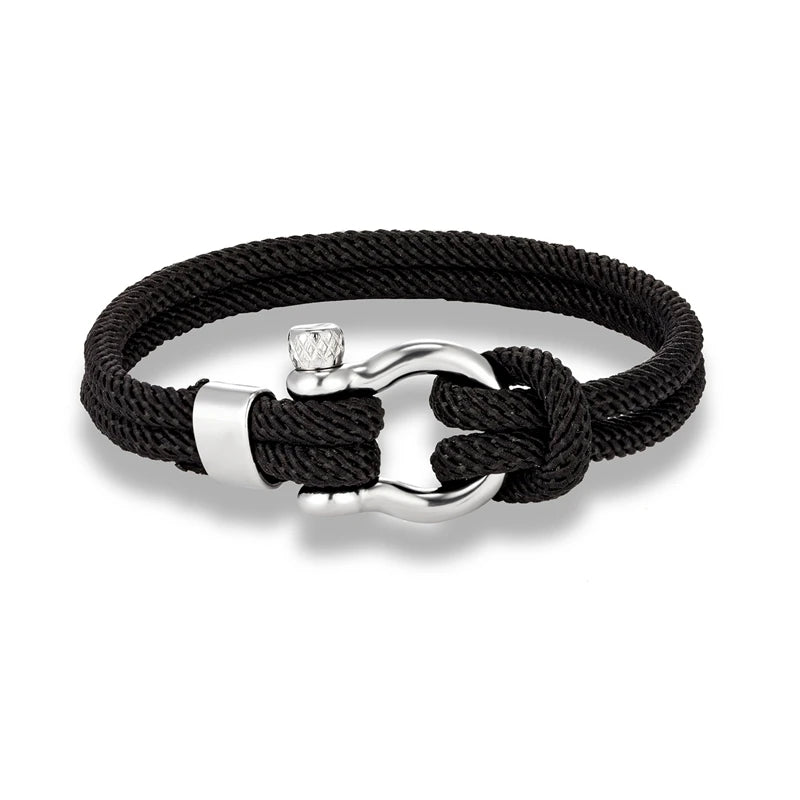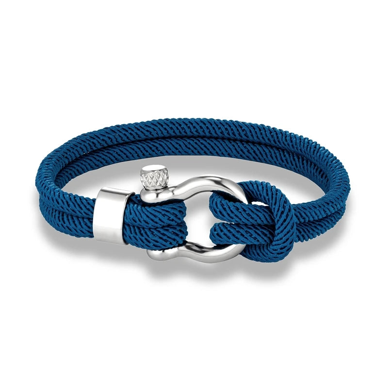 Pulsera unisex de estilo náutico con diseño minimalista y doble hebra de cuerda de algodón resistente. Incorpora un grillete en forma de ancla y cierre de seguridad oculto de acero inoxidable para mayor comodidad y durabilidad.Disponible en tallas de 19 cm, 21 cm y 23 cm, es perfecta para quienes buscan un accesorio con significado simbólico, resistente y con estilo casual. Ideal como regalo para parejas, amigos o para uso diario.