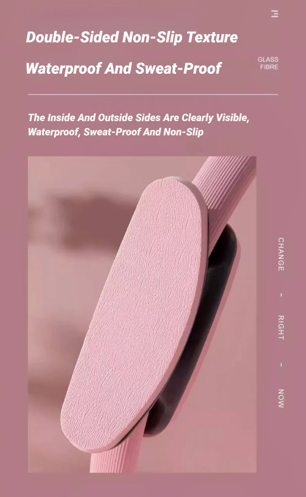 Textura antideslizante de doble cara, impermeable y resistente al sudor.